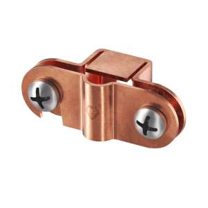 Надёжный медный держатель для фиксации провода диаметром 8–10 мм. Изготовлен из листовой меди, устойчив к коррозии и рассчитан на длительное использование. Оснащён двумя болтами M6 для быстрого монтажа и внутренней резьбой M8 под шпильку. Удобство установки обеспечивает крюк на монтажной пластине.