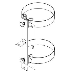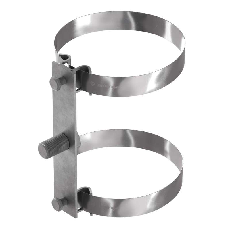 Двойной хомут D300 предназначен для прочного крепления изоляционного стержня к различным конструкциям. Универсальное крепление выполнено из стали горячего цинкования и пищевой нержавеющей стали, что обеспечивает высокую устойчивость к коррозии и механическим нагрузкам. Идеально подходит для применения в системах молниезащиты и заземления.