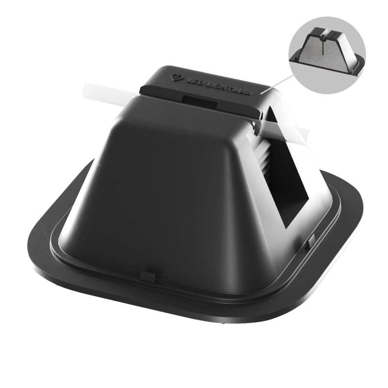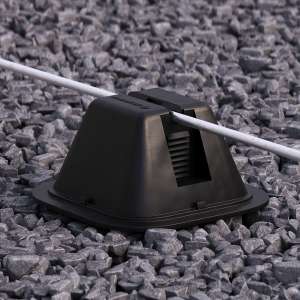 Держатель Pyramida предназначен для надежного крепления провода Ø8 мм на плоских крышах. Изготовлен из морозостойкого бетона весом 1 кг (±10%) и прочного полимерного корпуса (PE/PP), обеспечивающего долговечность в уличных условиях. Широкая площадь контакта снижает давление на кровельное покрытие, а сплошной фиксатор удерживает проводник по всей довжині держателя. Устойчив к УФ-излучению и перепадам температур.