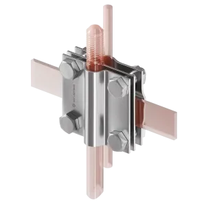 Соединитель Quadro 3 пл. (C1030432N) предназначен для надёжного соединения провода Ø8–10 мм, полосы шириной до 30 мм и стержня заземления диаметром 14,2 мм. Используется в системах молниезащиты и заземления для обеспечения проводимости и механической прочности соединения.