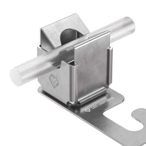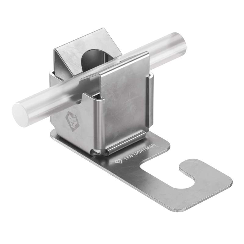 Тримач гаковий з Niro призначений для надійного прокладання блискавкозахисного або заземлювального дроту діаметром Ø8 мм без потреби свердлити покрівлю. Завдяки унікальному механізму фіксація проводу відбувається швидко та зручно, а монтаж здійснюється на вже наявні саморізи, цвяхи або шурупи.