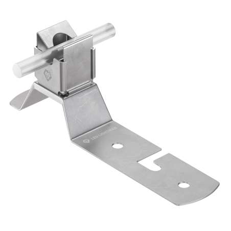 Тримач гаковий з Niro призначений для надійного прокладання блискавкозахисного або заземлювального дроту діаметром Ø8 мм без потреби свердлити покрівлю. Завдяки кліпсовому механізму фіксація проводу відбувається швидко та зручно, а монтаж здійснюється на вже наявні саморізи, цвяхи або шурупи.