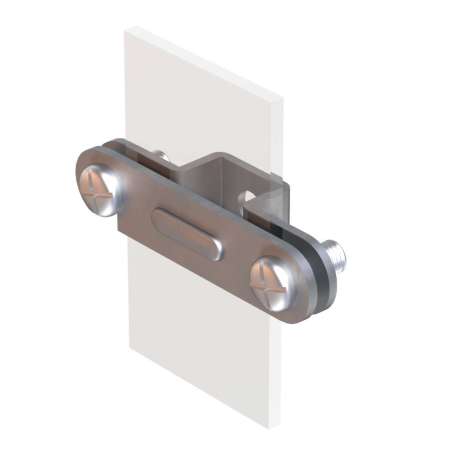 Надійний тримач для фіксації полоси контуру заземлення шириною до 40мм до поверхні. Виготовлений із сталі гарячого цинкування, забезпечує довговічність та стійкість до корозії. Оснащений двома болтами M6 для швидкого монтажу та внутрішньою різьбою M8 для кріплення шпильки. Додаткову зручність надає гак на монтажній пластині.