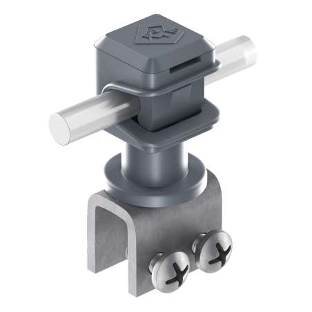 Усилений тримач для надійного кріплення дроту або мідної/алюмінієвої смуги до фальцевих покрівель та інших металевих конструкцій товщиною до 12 мм. Виготовлений із сталі гарячого цинкування з поліамідним тримачем Clip, стійкий до корозії та атмосферних впливів. Можливе кріплення провідників як уздовж, так і впоперек поверхні. Ідеально підходить для створення систем заземлення, зокрема — для заземлення сонячних панелей як захисту від блискавки. Забезпечує швидкий, зручний та надійний монтаж без пошкодження покрівлі.