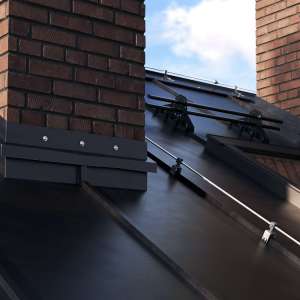 Усилений тримач Max з Clip для надійного кріплення дроту або мідної/алюмінієвої смуги до фальцевих покрівель та інших металевих конструкцій товщиною 22-34 мм. Виготовлений із сталі гарячого цинкування та поліаміду, стійкий до корозії та атмосферних впливів. Можливе кріплення провідників як уздовж, так і впоперек поверхні. Ідеально підходить для створення систем заземлення, зокрема — для заземлення сонячних панелей як захисту від блискавки. Забезпечує швидкий, зручний та надійний монтаж без пошкодження покрівлі.